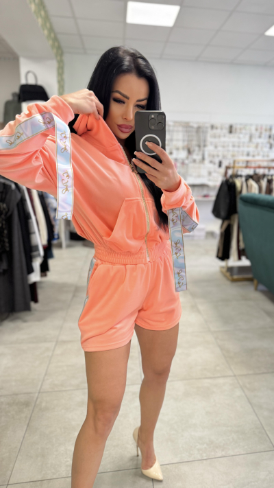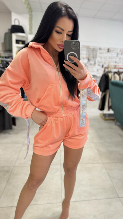 Štýlová dámska dvojdielna súprava v sviežej broskyňovej farbe, ktorá je ideálnou voľbou na teplé dni ☀️