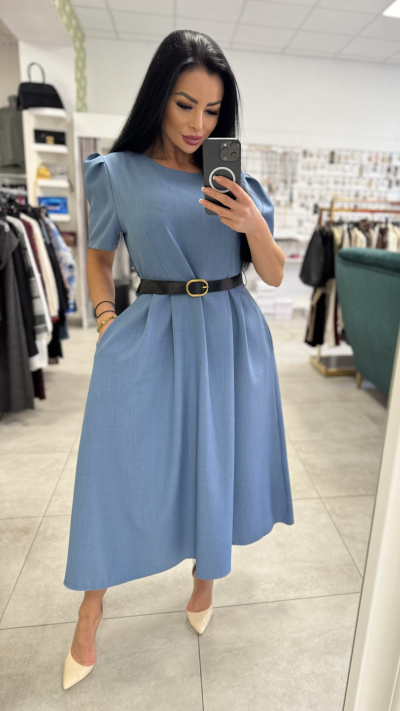 Elegantné dámske šaty v jemnej modrej farbe, ktoré sú stelesnením ženskosti a nadčasového štýlu ????